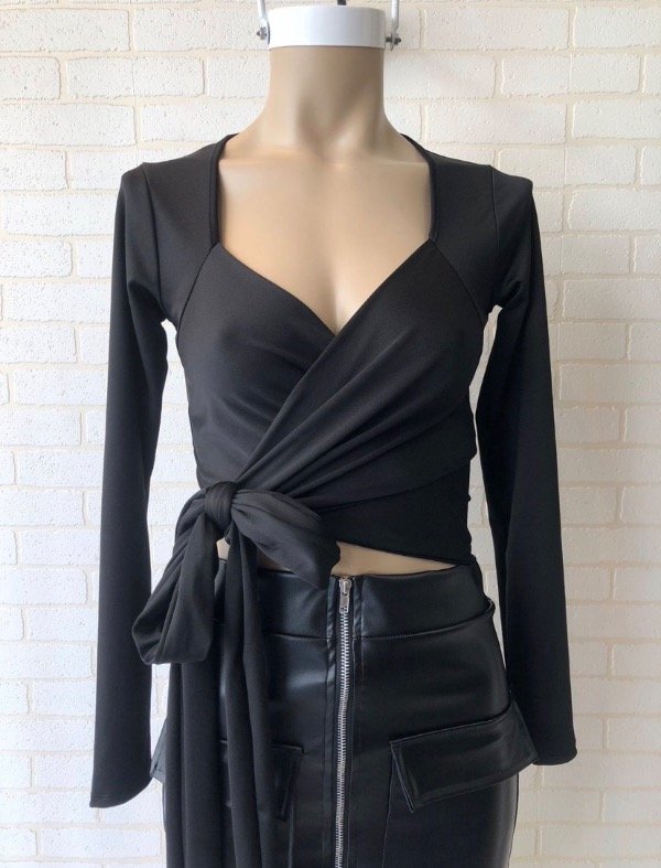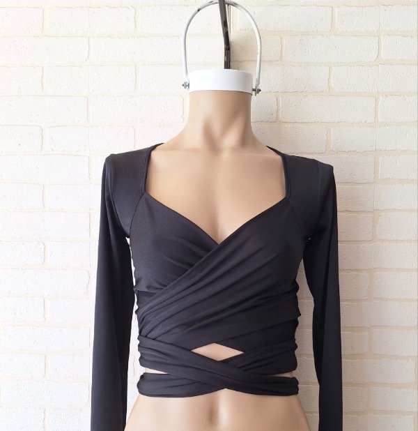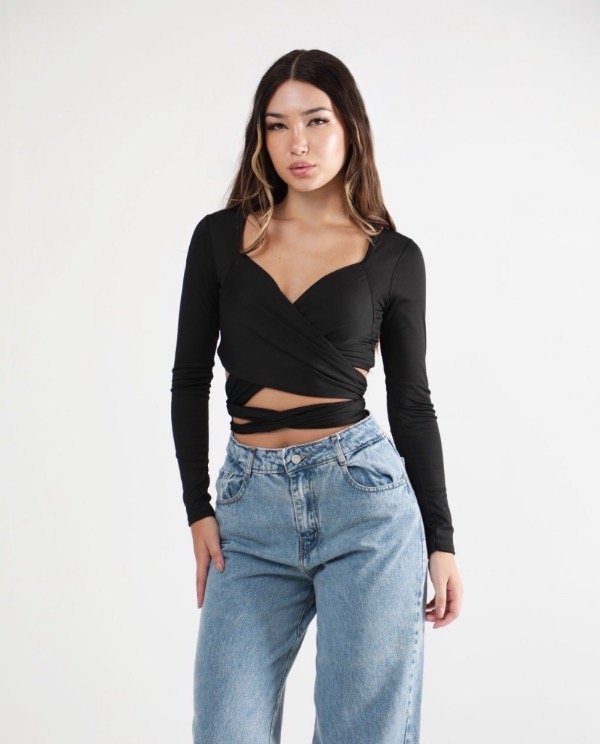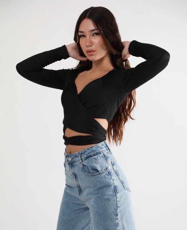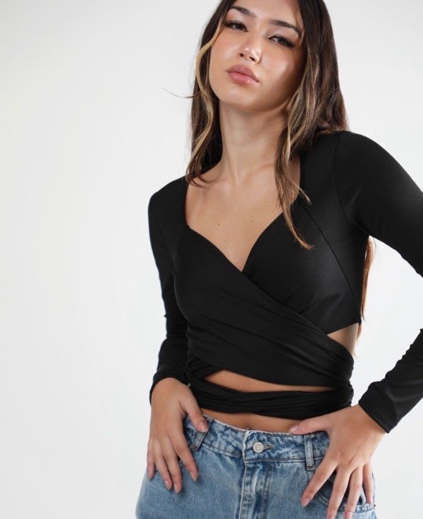 Top de Microfibra manga largas con lazo cruzados para usarlo de varios formas