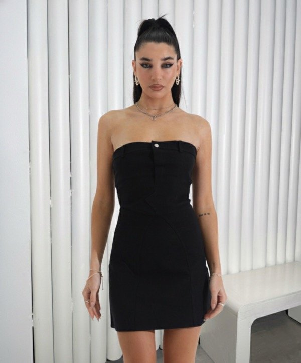 Vestido pollera strapless elastizado de bengalina .